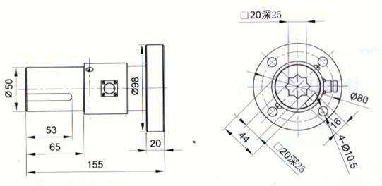 Static torque measurement, one end is the key (or square key) connection, the other end is a flange connection.