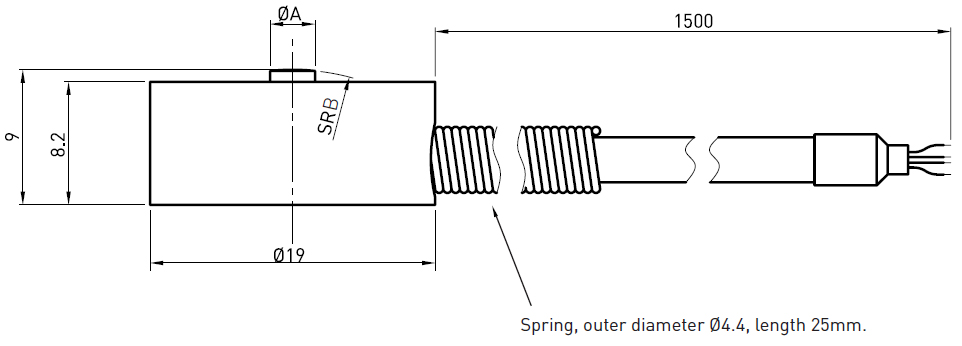 Miniature load cell with metal foil strain gauge technology , made of stainless steel.