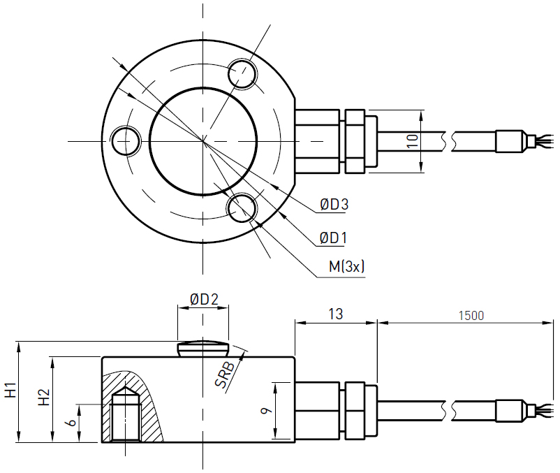 Miniature load cell with diaphragm type structure, made of stainless steel or aluminum alloy.
