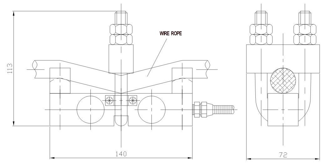 Side pressure tension load cell is the double shear beam structure, easy installation, simple operation, dedicated to the measurement of wire rope tension. Steel wire rope is fixed on the sensor through the U bolt, when the wire rope tension, force acting on the sensor through a guide wheel.