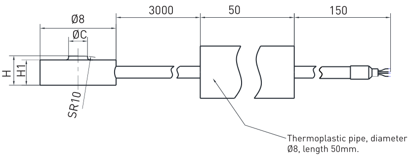 Miniature load cell with metal foil strain gauge technology, made of stainless steel or aluminum alloy.