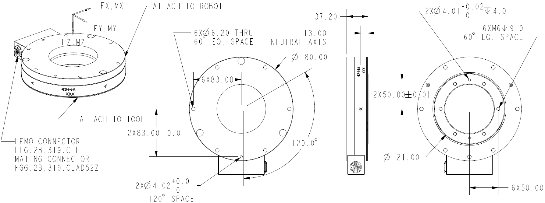Dimensions(mm): ( Fx/Fy/Fz :400/400/400N Mx/My/Mz: 50/50/50Nm) Diameter : 180mm