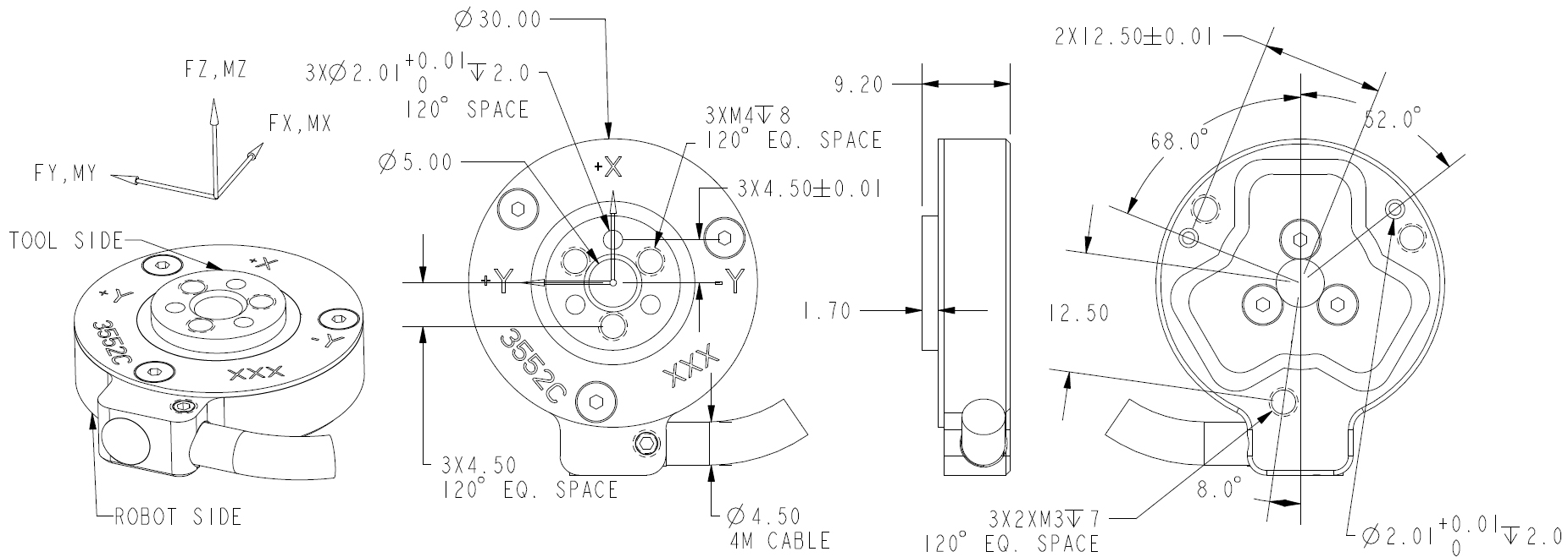 Dimensions(mm):(Fx/Fy/Fz: 600/600/1000N Mx/My/Mz: 9.0/9.0/9.0Nm)Diameter :30mm