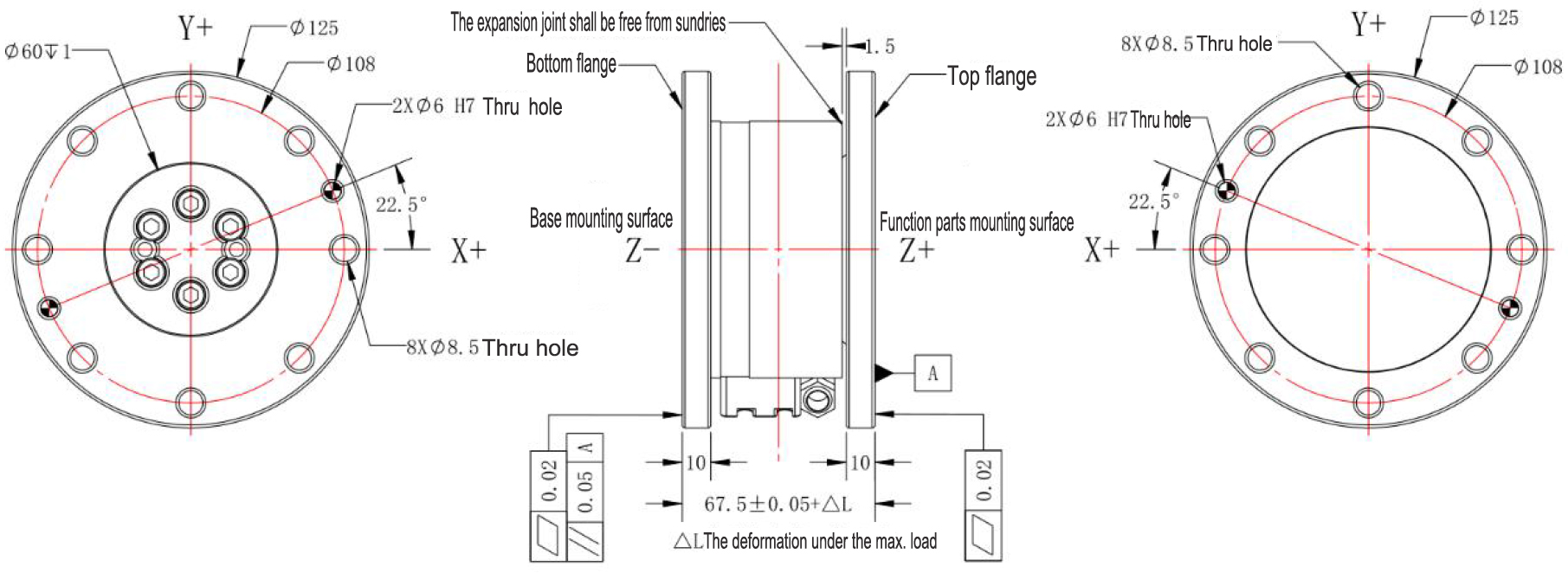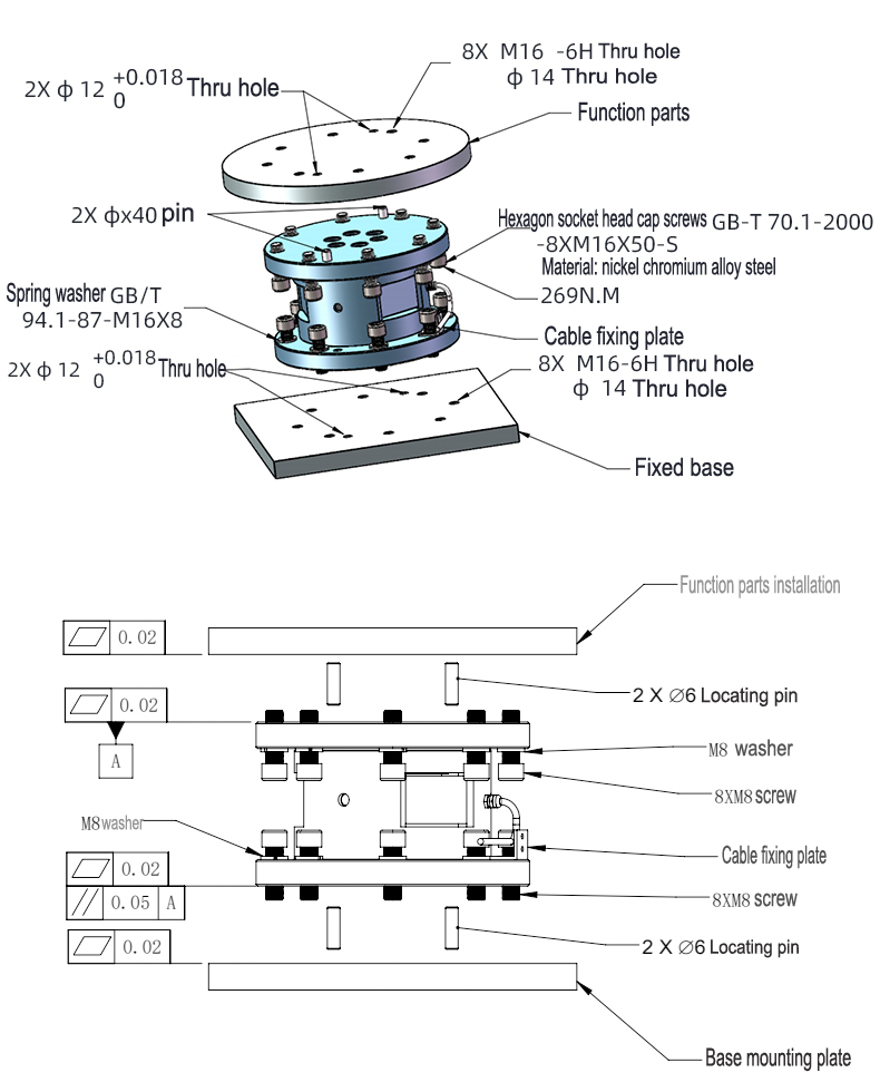 1: The selection of measuring range shall not only consider the applied external force, but also fully consider the dead weight of fixture and workpiece and the bending moment generated by them.