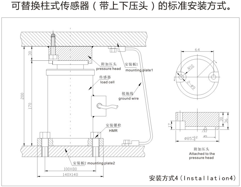 7、與現(xiàn)有市場的地磅傳感器具有可兼容的安裝尺寸,維修方便,并且對安 裝要求降低(傳感器安裝時對中心的對中要求降低,可允許側(cè)向5毫米的 中心偏移而不影響精度)